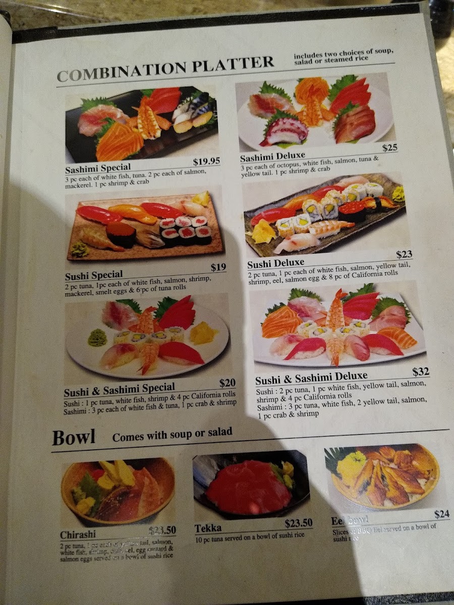 This menu is suitable for lunch or dinner occasions and caters to those seeking casual dining with options for both sushi lovers and fans of Japanese grilled dishes. The structured menu allows for straightforward selection whether ordering quickly or enjoying a more relaxed meal.